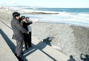 常陸那珂港開発で浸食された阿字ヶ浦海岸を視察する