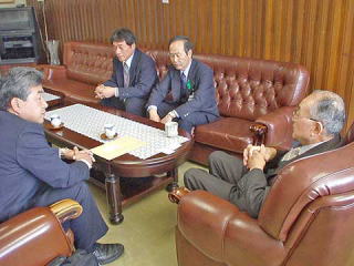 最後に、「地域住民のいのちと暮らしを守ることがわが党の役割であり、そのためにも地方自治体と一致できることは協力してがんばりたい」と述べ町長との懇談を終えました。この懇談には地元の柴清町議と辻井英雄常任委員が同席しました。