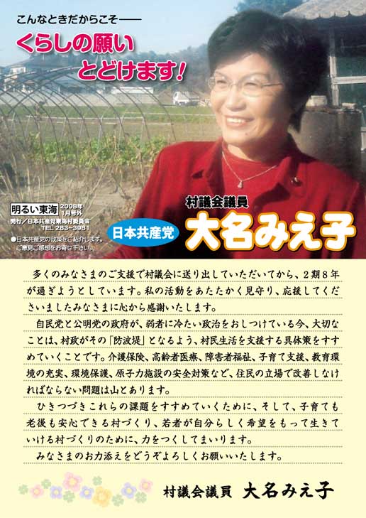 現在/東海村村議会議員(3期目/建設経済環境委員、原子力問題調査特別委員、議会運営委員)