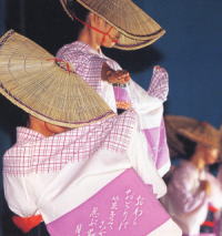 万人もの観光客が訪れるそうです。そんなお祭りを一度見たいと思っていました。![]() 八尾町滞在時間が5時間というとても短い観光でしたが大変満足して帰ってきました。夜の10時から明け方にかけて町を歩いたわけです。ぼんぼりに照らし出された、石だたみの町並みは江戸時代さながらのようです。 しっとりと落ち着いた町の中から涌き出るように踊りの列が進んで来るのです。唄い手、三味線、胡弓、囃手、踊り手(男3,4人、女3,4人)12〜13人のグループや、三味線だけの地方(じかた)、百人もの輪踊り、等々実に多彩な踊りが続きます。 おわらの踊りの優雅さは、見る人誰をもひきつけてしまいます。編み笠を深くかぶって手や指先を巻くように風になびくように踊る美しさは、見事な舞踊というほかありません。 生糸や、売薬などの商いによる豊かな富の蓄積で栄えた町の、”洗練された芸術”に触れたおわら風の盆でした。 (松K) |