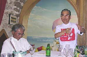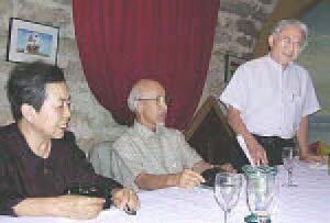 8月26日ホテルの外のレストランで、ひと足早いさよなら夕食会がもたれた。会場は石造りの格好の部屋であった。藤野先生の部屋で「愛する人」を告白したIさんが、スピーチの