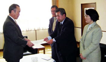 日立市の樫村千秋市長にも「國、県、関係自治体との連携による存続」のための再検討を求めました。(「しんぶん赤旗」2004.4.23)